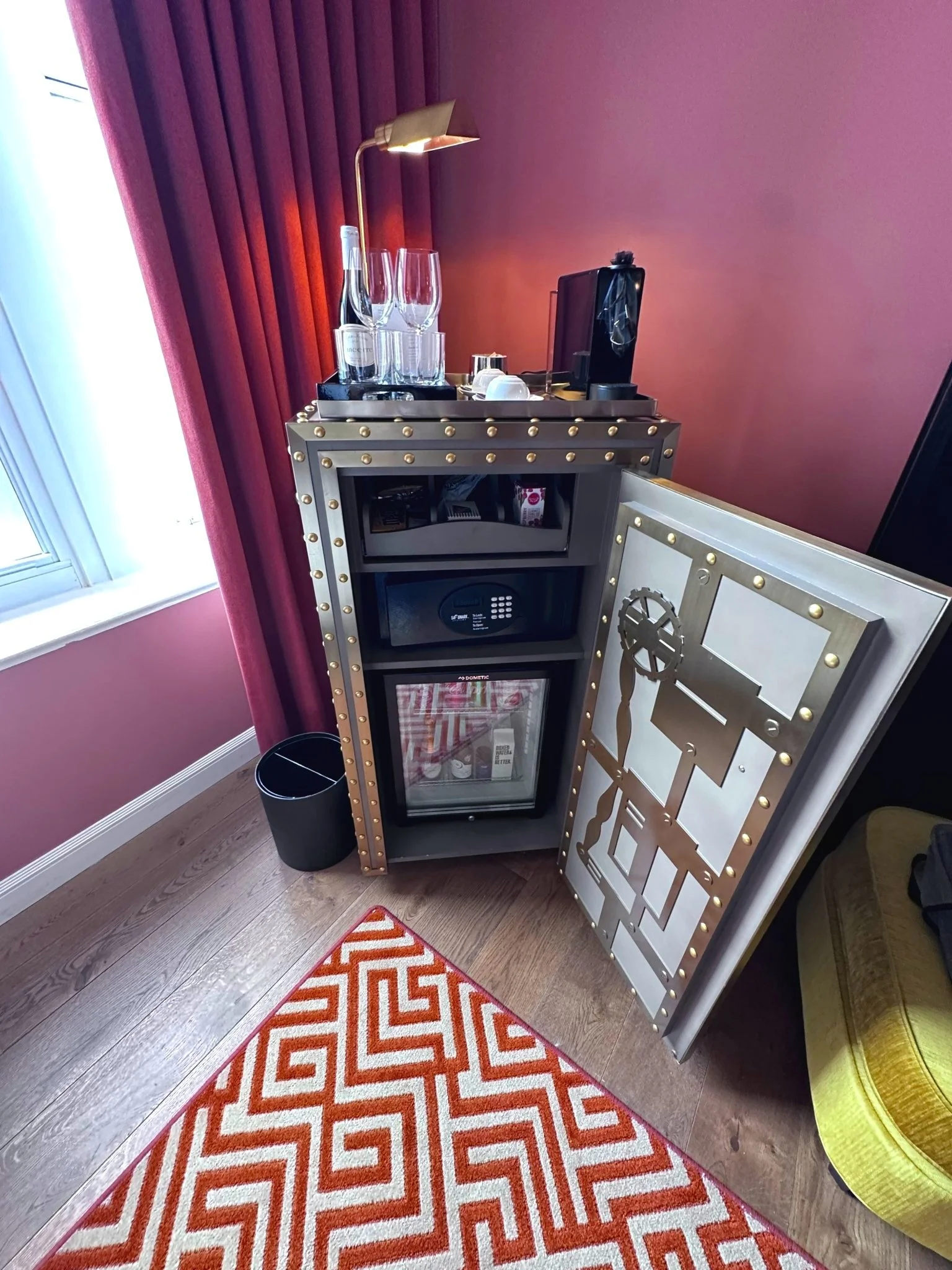 That awesome ambiance extends to the rooms as well. You can definitely feel touches of the bank in your sleeping quarters also - the mini fridges are little safes! One of the coolest things we have ever seen! The beds were super comfy and the bathrooms felt luxurious. It seems rare that hotels include robes and slippers anymore, but the Riggs had both. Our toddlers loved wearing the slippers around. One nice touch we noticed was that the Riggs provided each room with an umbrella - which was great because we didn’t even think to bring one and it did rain one day of our trip. It was a great thing to have since we were walking everywhere.