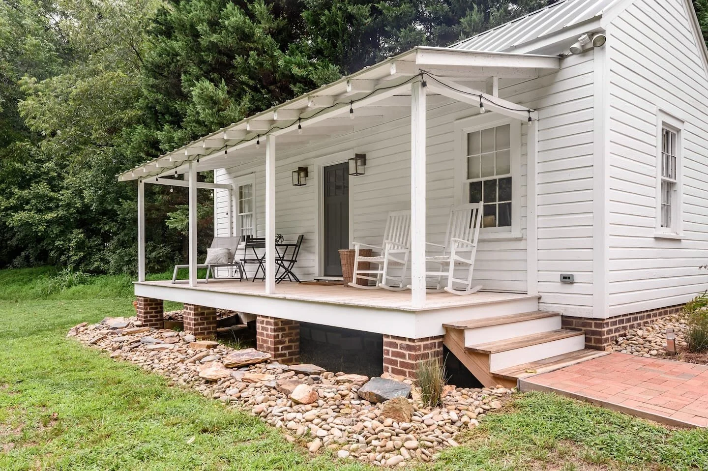 This adorable cabin is so cute! You can relax out on a front porch rocker facing the Eno River. This property was saved from demolition, disassembled, moved, and restored in 2018. Most of its historic structure remains, including heart pine floors, original shiplap, and cathedral ceilings. Even though this original cabin is very old, it has all the modern conveniences and comforts you could want or need! Check out this link for this awesome Airbnb plus close to Raleigh!
